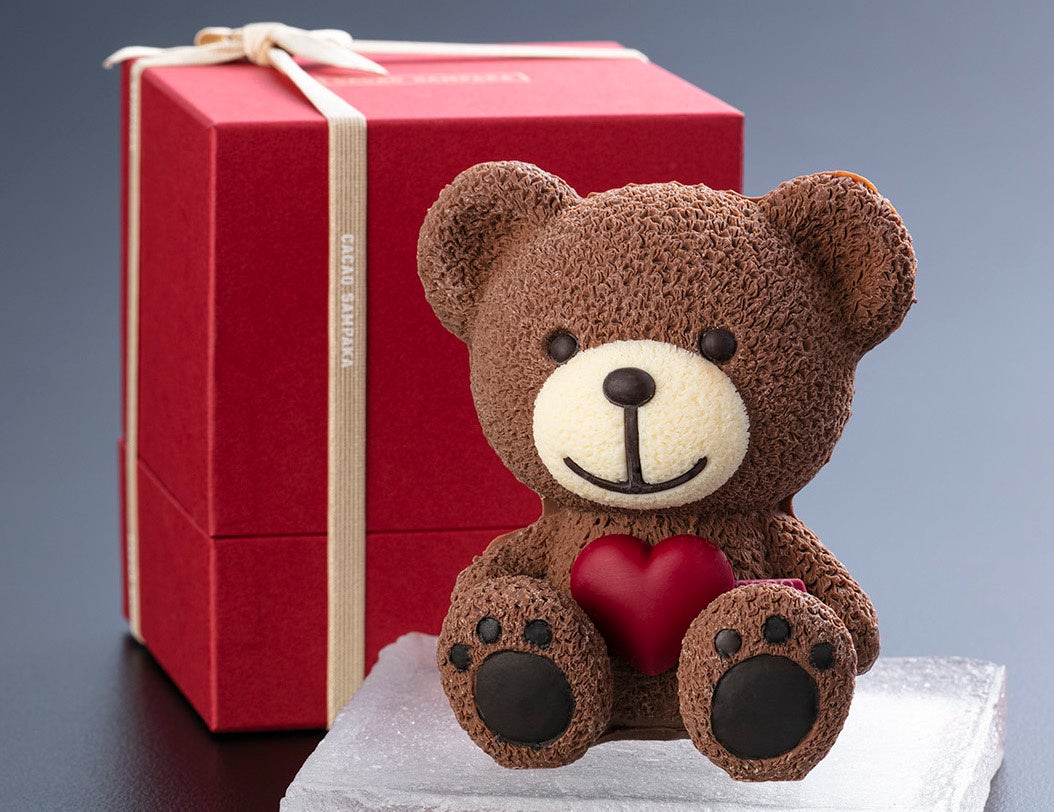 バルセロナに本店を構えるショコラテリア。 4種のチョコレートを使い、ふわふわの毛並みまで精巧に表現。まるでぬいぐるみのようなチョコレート。 ハートベア カロロ 税込10,800円