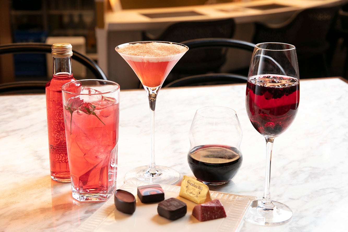 チョコレートとの相性を考えて考案されたオリジナルカクテルとのマリアージュで大切な人と楽しむ大人時間を。