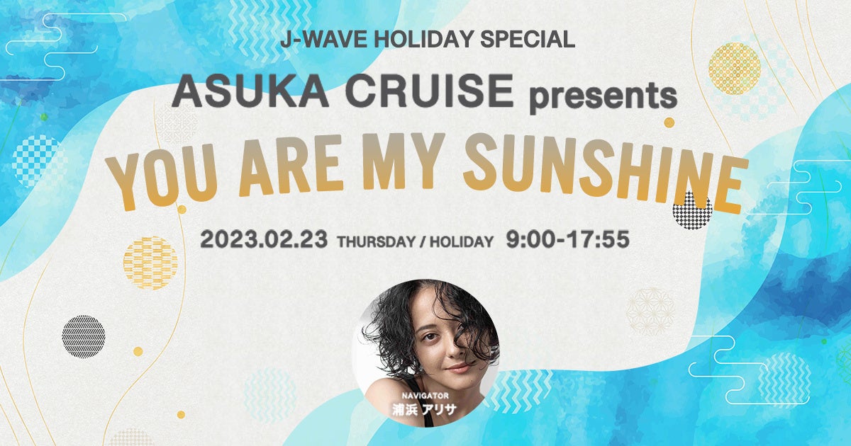 FMラジオ局J-WAVE(81.3FM)では、2023年2月23日(木・祝)9:00~17:55、浦浜アリサがお届けする9時間の特別番組『J-WAVE HOLIDAY SPECIAL ASUKA CRUISE presents YOU ARE MY SUNSHINE』をオンエアいたします。