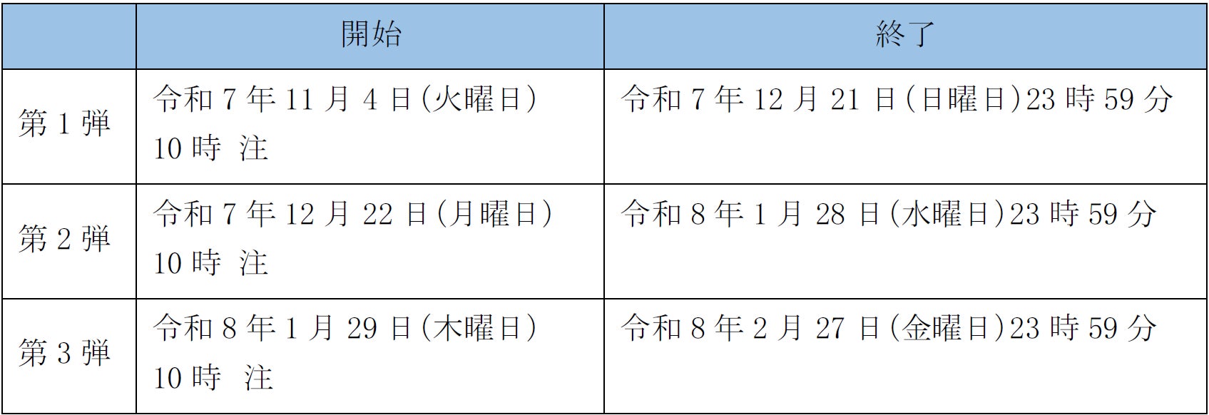 注記2 第1弾の配布状況により、第3弾へクーポン枚数を充当する場合があります。