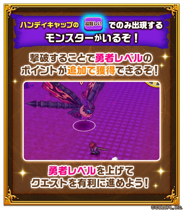 また、今回のイベントクエストでは、「勇者レベル」というクエスト内の敵を倒すと「勇者レベル」が上がり、キャラクターのステータスが強化されるギミックが登場します。後半の高難易度クエストでは「勇者レベル」の育成が攻略のカギとなっております。
