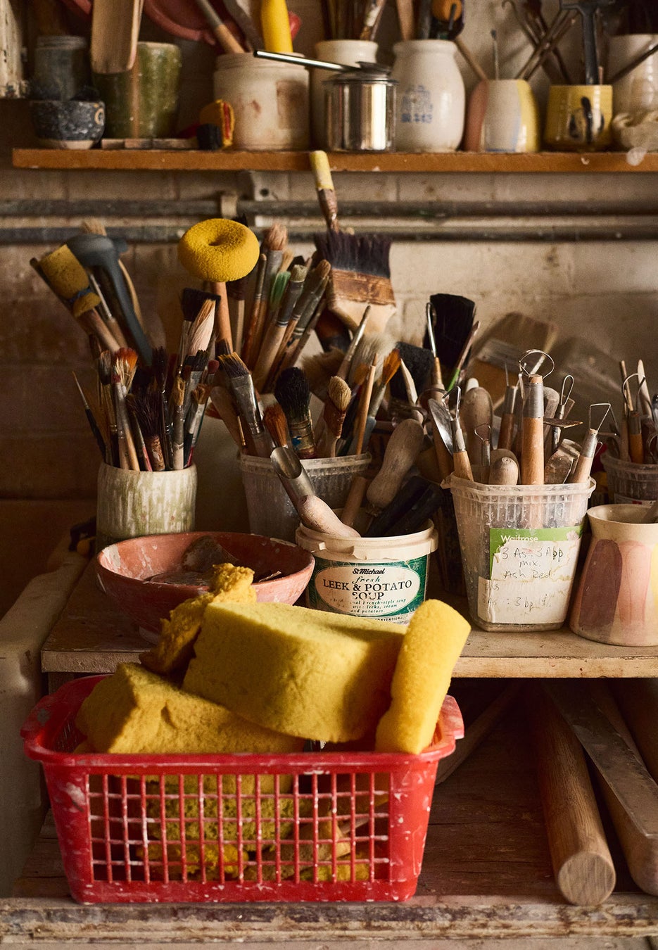 画家を志していたタッシーは、ロンドンのセントラル・スクール・オブ・アート在学中に、偶然触れたろくろとの出会いをきっかけに、造形や色彩への感性を陶芸の世界へと向けていきました。1980年代に設立したホクストンのスタジオを拠点に、ろくろ成形による実用的な器から、独自に開発した釉薬の色彩を通して、陶のフォルムの可能性や色の相互作用を探る彫刻的作品まで、幅広い制作を行っています。