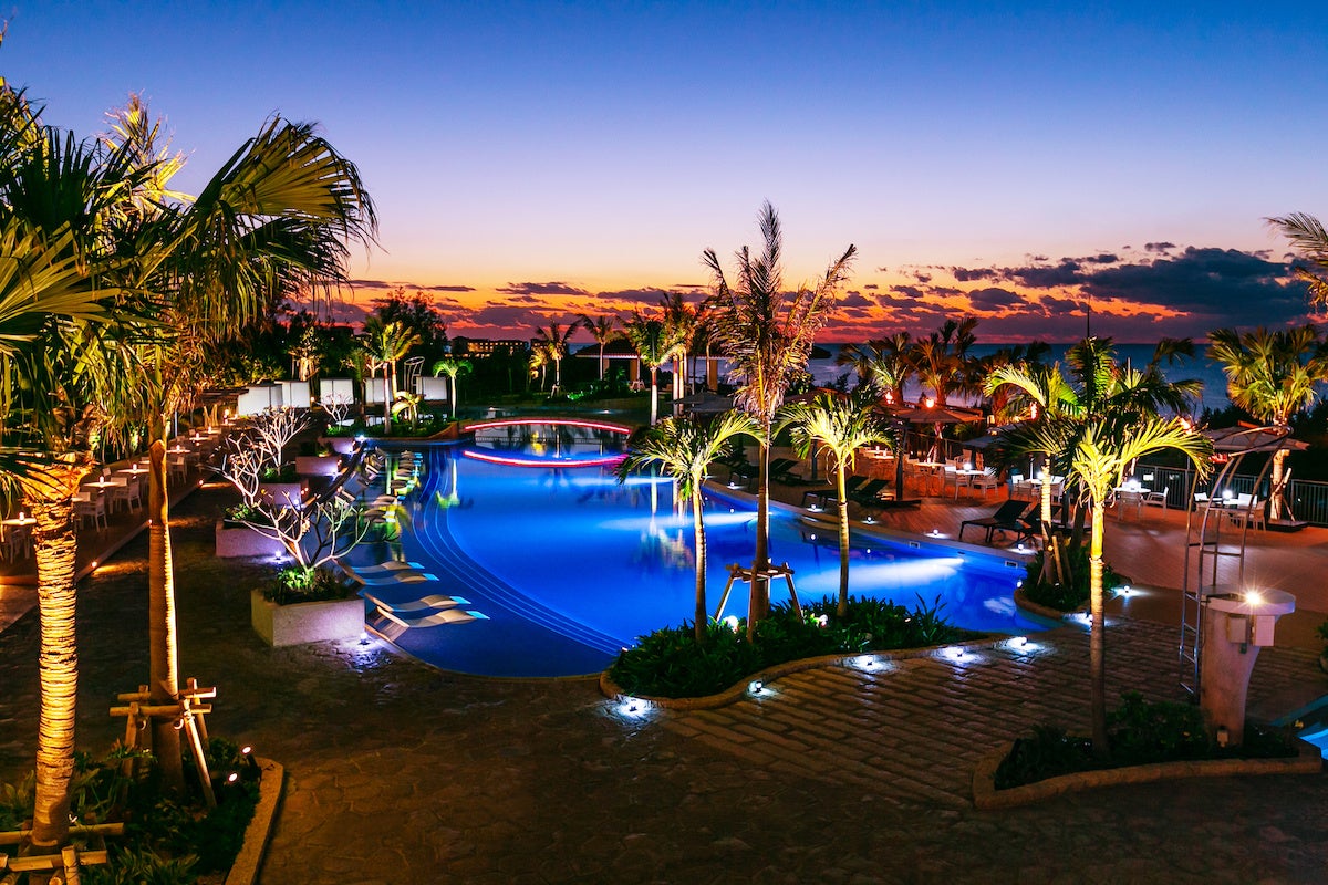 沖縄本島北部、亜熱帯の豊かな森と碧い海が広がる「やんばる」の入口に位置する「オリエンタルホテルズ&リゾーツ」初のリゾートホテルです。沖縄自動車道許田インターチェンジに近いため、北部のみならず中南部へアクセスしやすいアクティブな沖縄観光に最適。全室オーシャンビューの 44 ㎡以上の広い客室(361 室)、レストラン&バー、宴会場、チャペルなどを備えています。