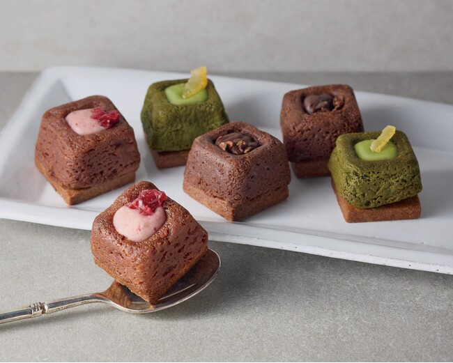 東京・田園調布の小さな焼菓子専門店。ガナッシュ、生地、サブレの3層構造にトッピング素材をあしらったフォンダンショコラ。