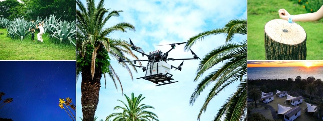 本サービスでは、その離島リゾート「PICA初島」で過ごす1泊2日の島時間がますます豊かになるコンテンツをご用意しました。朝食後スマートドローンで空から運ばれてくる朝食デザートを楽しんだり、流星を検知するアンテナを備えたハンモックに横たわって夜空をのんびり眺めるなど、最新テクノロジーの融合によりグランピングの楽しみ方が広がります。
