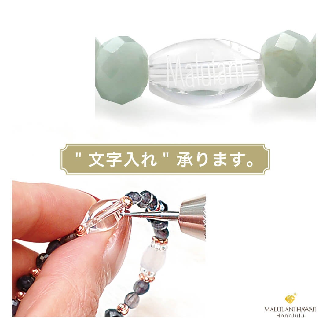 ご希望の方には、プラス2,200円で、お好きな英数字を刻むことも可能。 お誕生日や記念日、お好きな数字や言葉を刻んだブレスレットは、特別なお守りとなるでしょう。