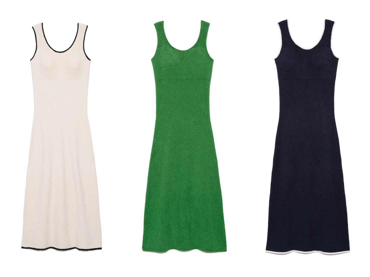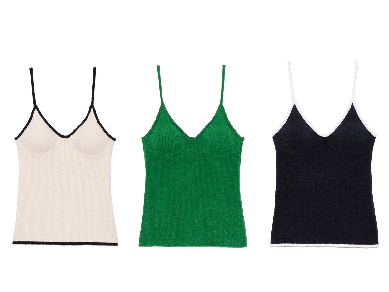 トレンドライクなコルセット調のデザインをニットで表現しました。すっきりとしたフロントのネックラインに、バックスタイルも広めなカッティングにすることで大人のヘルシーさを演出。配色のパイピングでアクセントをプラスしているのでインナーとしてはもちろんトップスとしても活躍します。