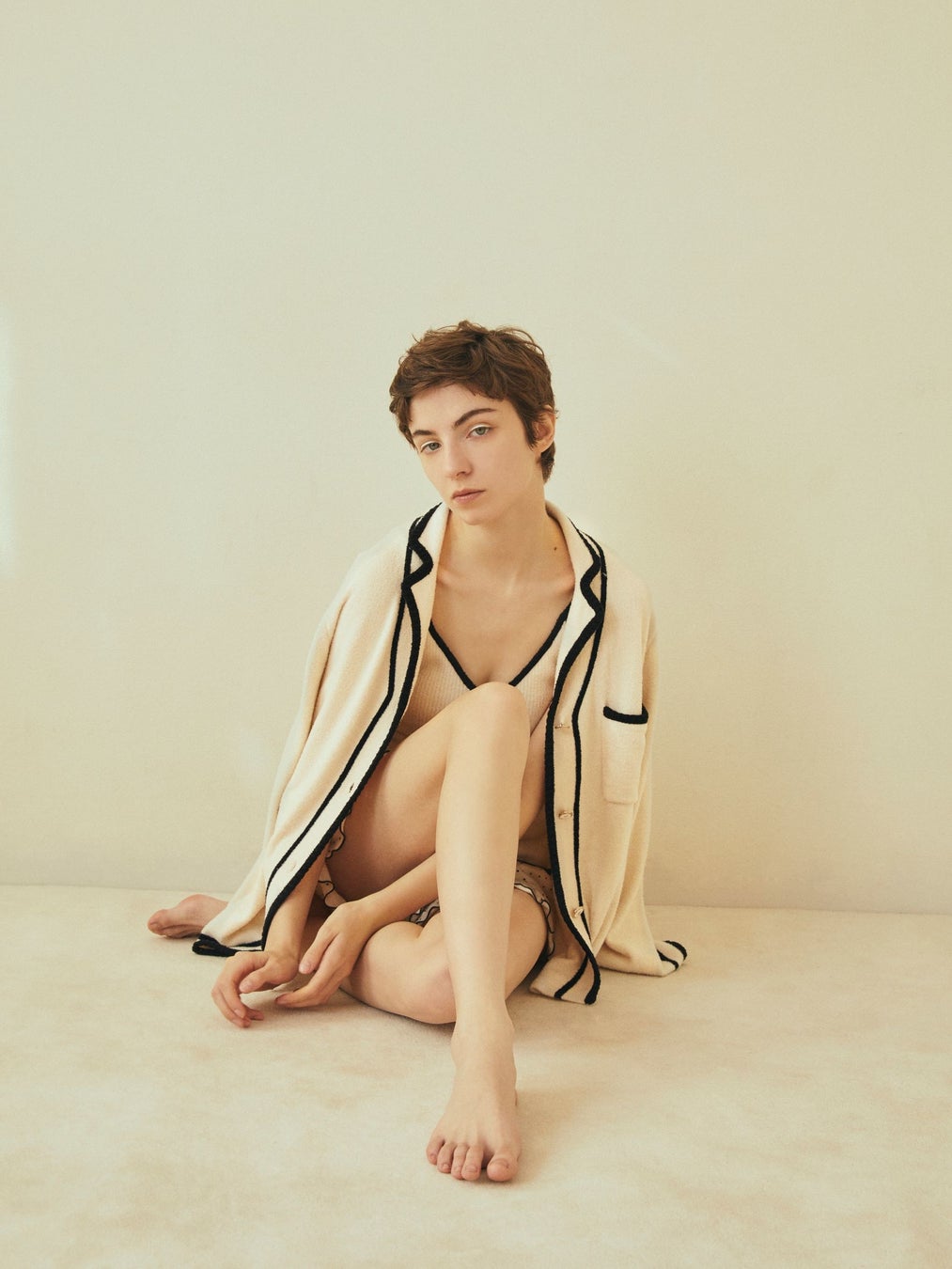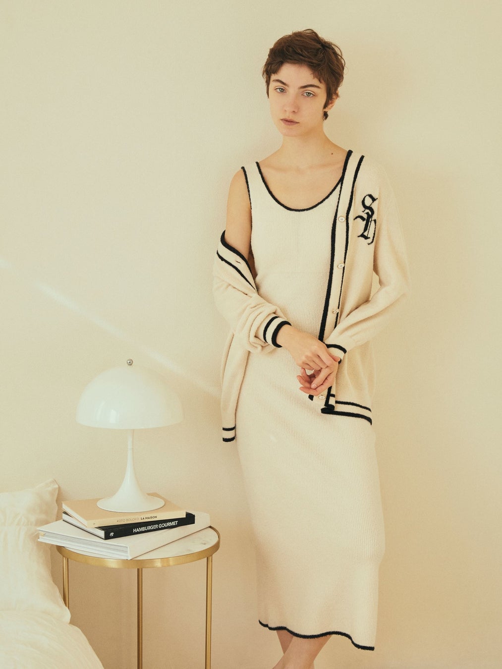 ■【Creamy Touch】ブレードパイピングエンブレムカーディガン