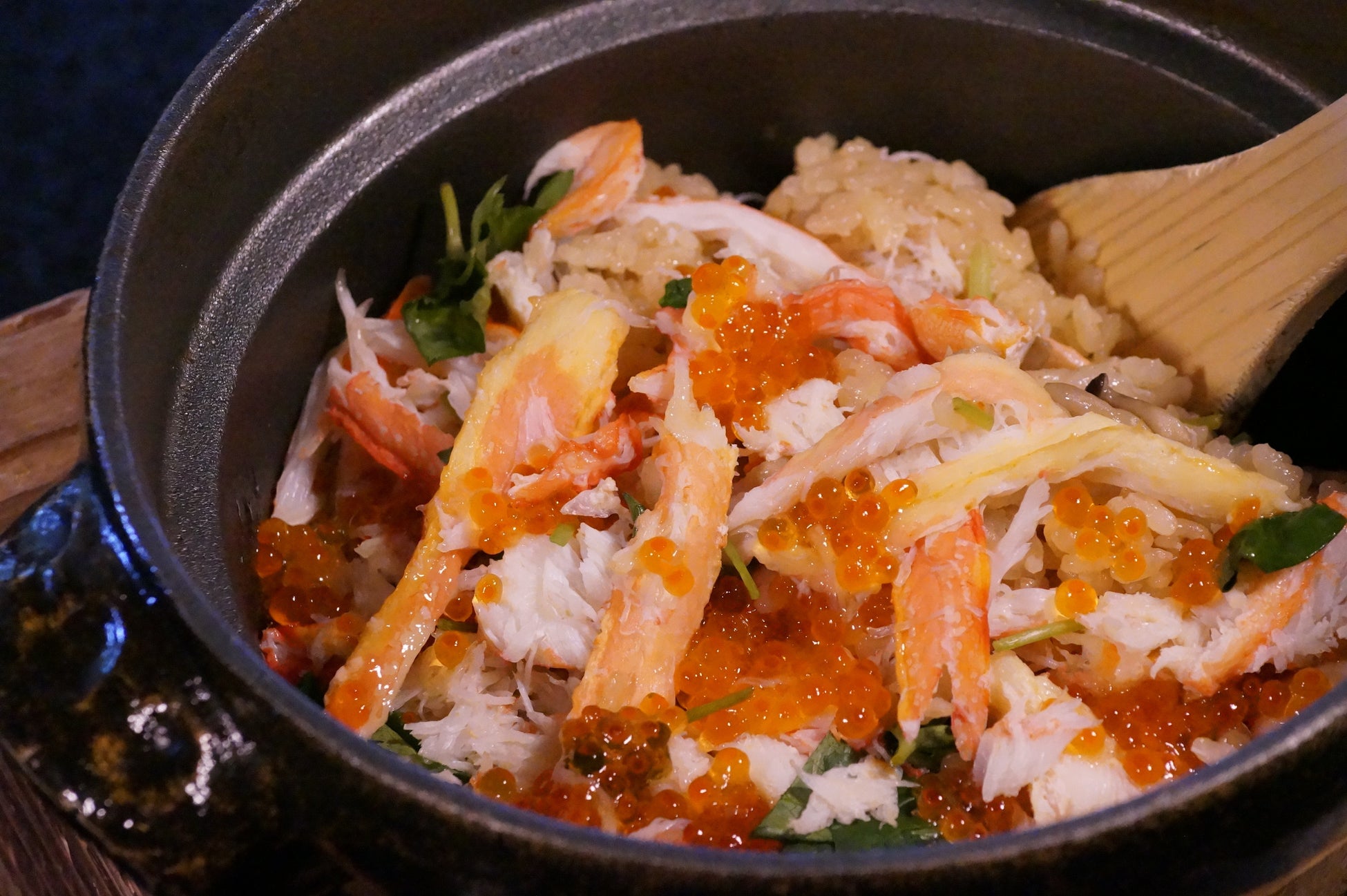 北前蟹を使った蟹ご飯がオプションメニューでご注文いただけます。