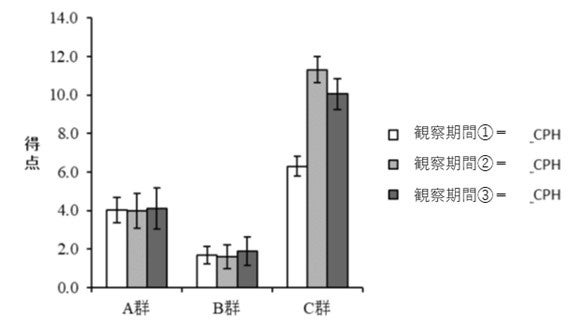 C 群の女性において、 観察期間①よりも観察期間②、③の方があがりました。