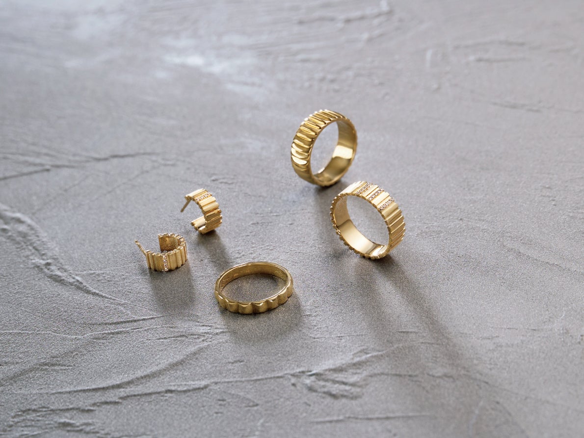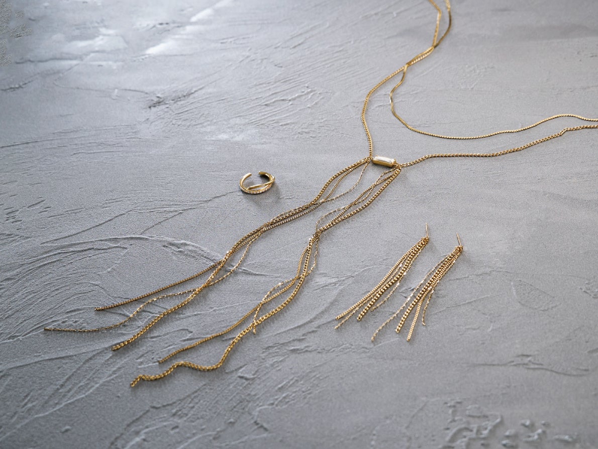 10月18日(金)より発売するコレクションは、幾重にも重ねたチェーンがスゥイングし、印象的でモダンな輝き表現しています。表情の異なるチェーンを組み合わせたネックレスやピアス、手元には直線的なデザインとダイヤモンドを組み合わせたリングなど、気負いなく軽やかに身に着けたいアイテムを提案します。