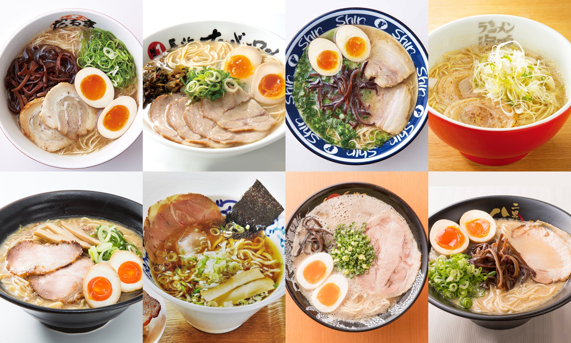 長浜ナンバーワン / 博多川端どさんこ / らーめん二男坊 / 元祖博多だるま / 博多醤油ラーメン 月や / 博多らーめんShin-Shin / ラーメン海鳴 / 博多一幸舎