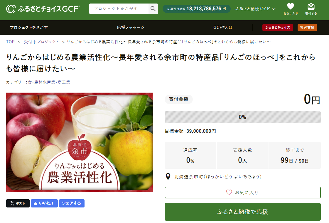 ◆ プロジェクト名: りんごからはじめる農業活性化~長年愛される余市町の特産品「りんごのほっぺ」をこれからも皆様に届けたい~