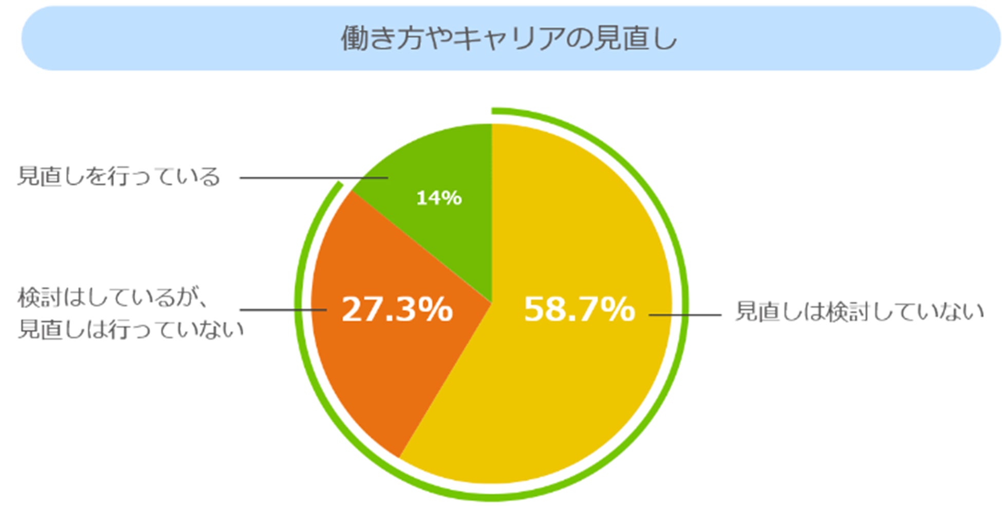● ミドル・シニア層の8割以上が働き方やキャリア、人生やライフプランの見直しの検討していない「このままでいいや層」、もしくは検討を行っているが実行できていない「モヤモヤ層」であった。 -①