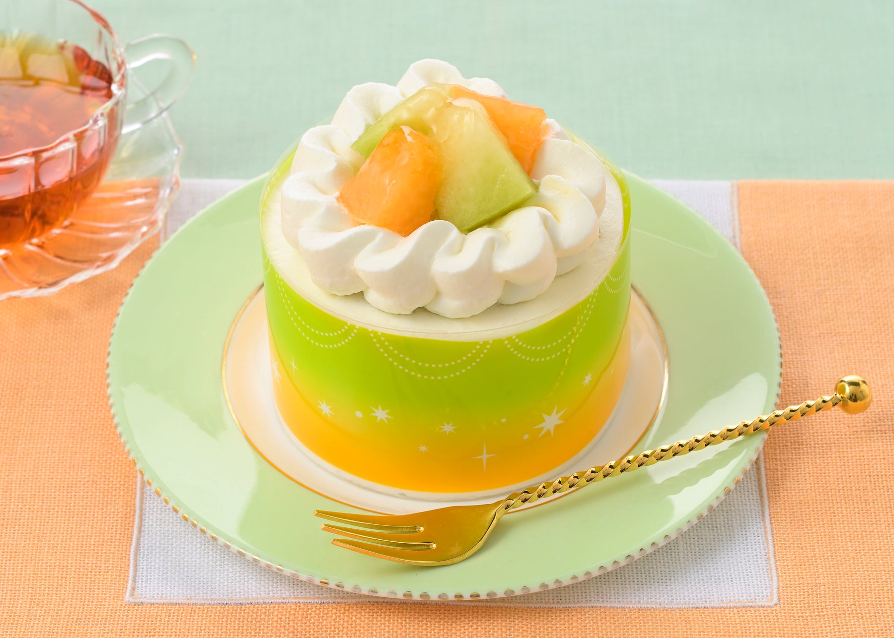 ふわふわのスポンジで、程よい甘さの練乳クリームと、メロンとりんごのジャムをサンドし、コクのある生クリーム入りホイップクリームと、2種類のメロンをボリュームたっぷり飾りました。口いっぱいに広がる、クリームとメロンのとろけるような甘みと豊かな香りをお楽しみください。