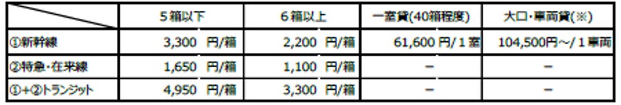 ※ご契約先は㈱ジェイアール東日本物流です ※料金は税込み表示です