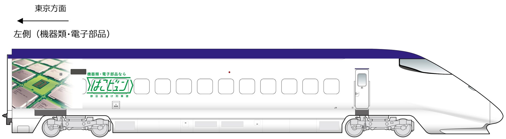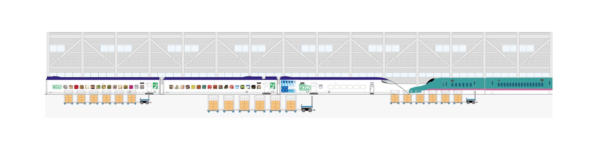 2025年4月から臨時列車の一部客室を使用した大口輸送サービスを開始しました。現在は、毎週金曜日に最大200箱程度の輸送が可能ですが、より多量の荷物を高頻度で輸送してほしいというニーズに応え、E3系新幹線1編成の全号車を荷物専用車両として改造します。