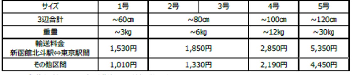 ※ご契約先は㈱ジェイアール東日本物流です ※料金は税込み表示です ※1箱は3辺合計120㎝程度を想定
