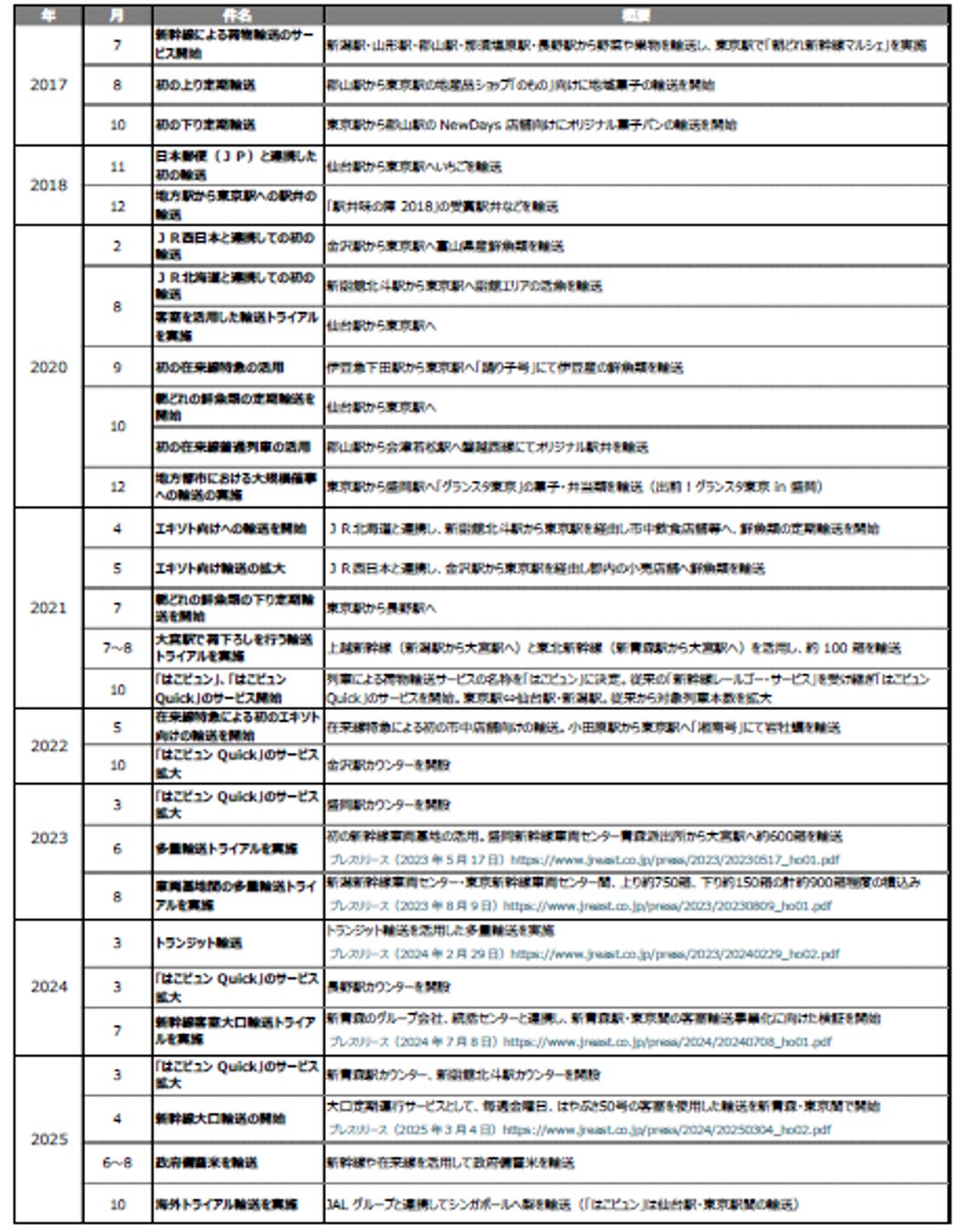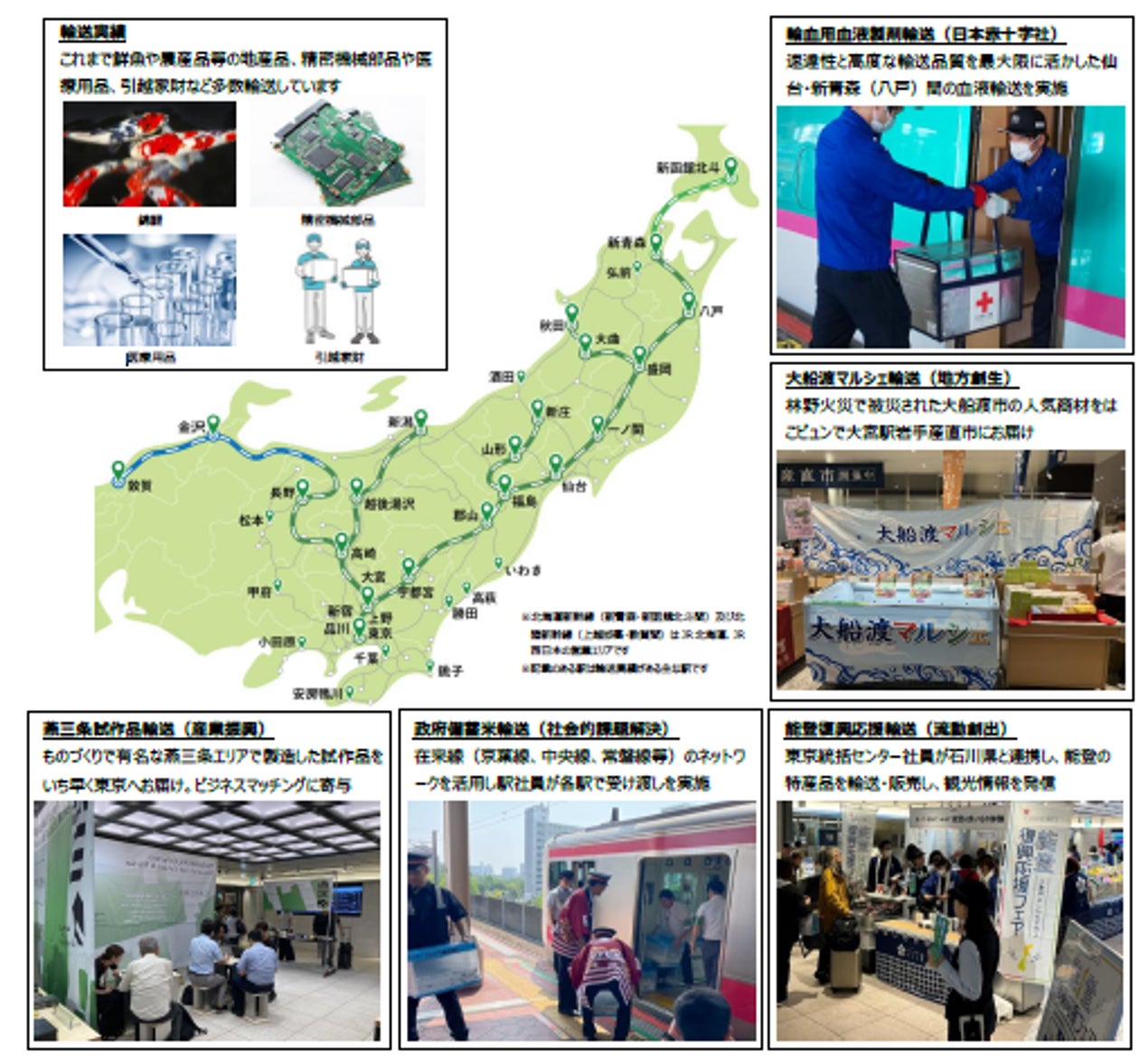 2025年4月18日より、毎週金曜日に東北新幹線はやぶさ50号(E5系10両編成)の1号車、2号車を荷物専用車両として新青森・東京間の大口輸送を開始青森県と連携した「地域連携モーダルシフト等促進事業」モーダルシフトや共同輸配送等を推進することを目的とした2025年度国土交通省「地域連携モーダルシフト等促進事業」に採択され、協議会を立ち上げ首都圏への新幹線輸送の実証事業を連携して実施中