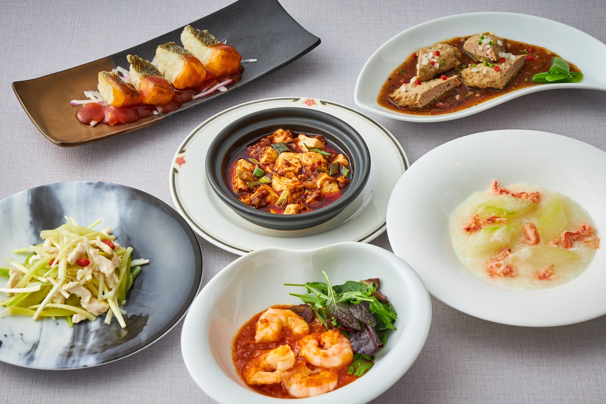 主菜は桂林の伝統メニューである「麻婆豆腐」と「小海老のチリソース煮」を定番として常時ラインナップし、その他の4種類が隔週で替わります。旬の食材を使用し、季節感を味わえるメニューをご用意いたします。お食事も3種類からお選びいただけ、組み合わせは幾通りにもなりますので、いつご来店されても、新しいお好みのランチをご堪能いただけます。