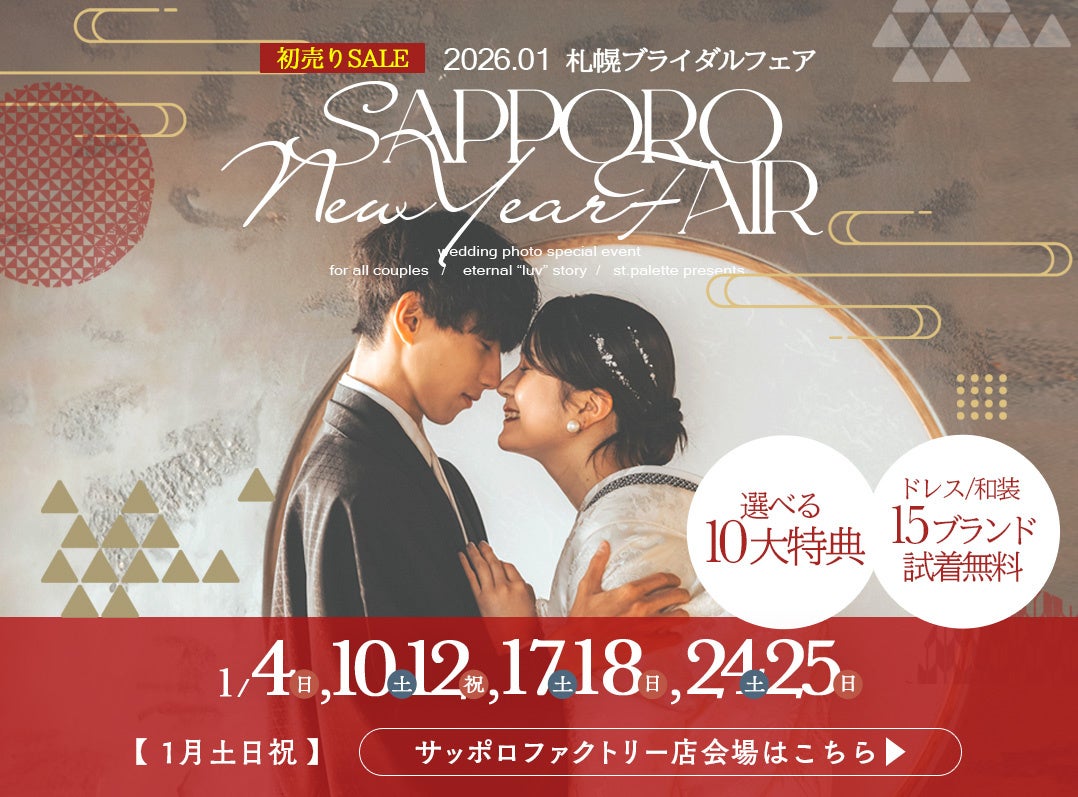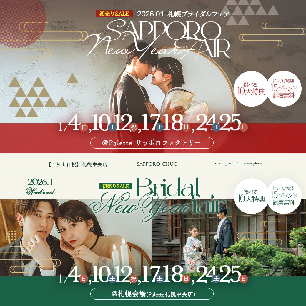 2026年1月、札幌にて「一生に一度」を叶える体験型ブライダルフェア開催。憧れのインポート・ブランドドレス無料試着&最大70%OFF特典で、理想のフォトウェディングを現実に。