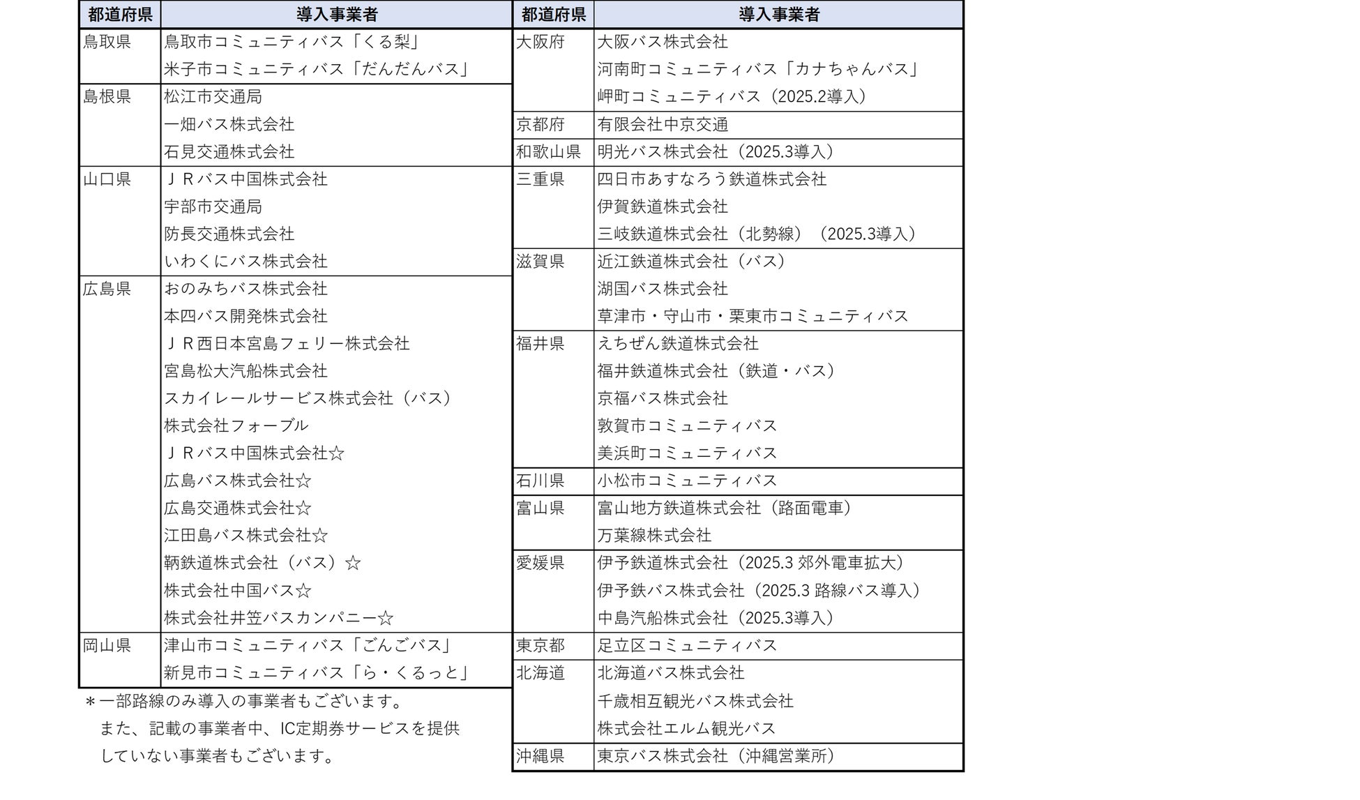 地域鉄道・バスICOCAシステム導入事業者(2025.3時点)