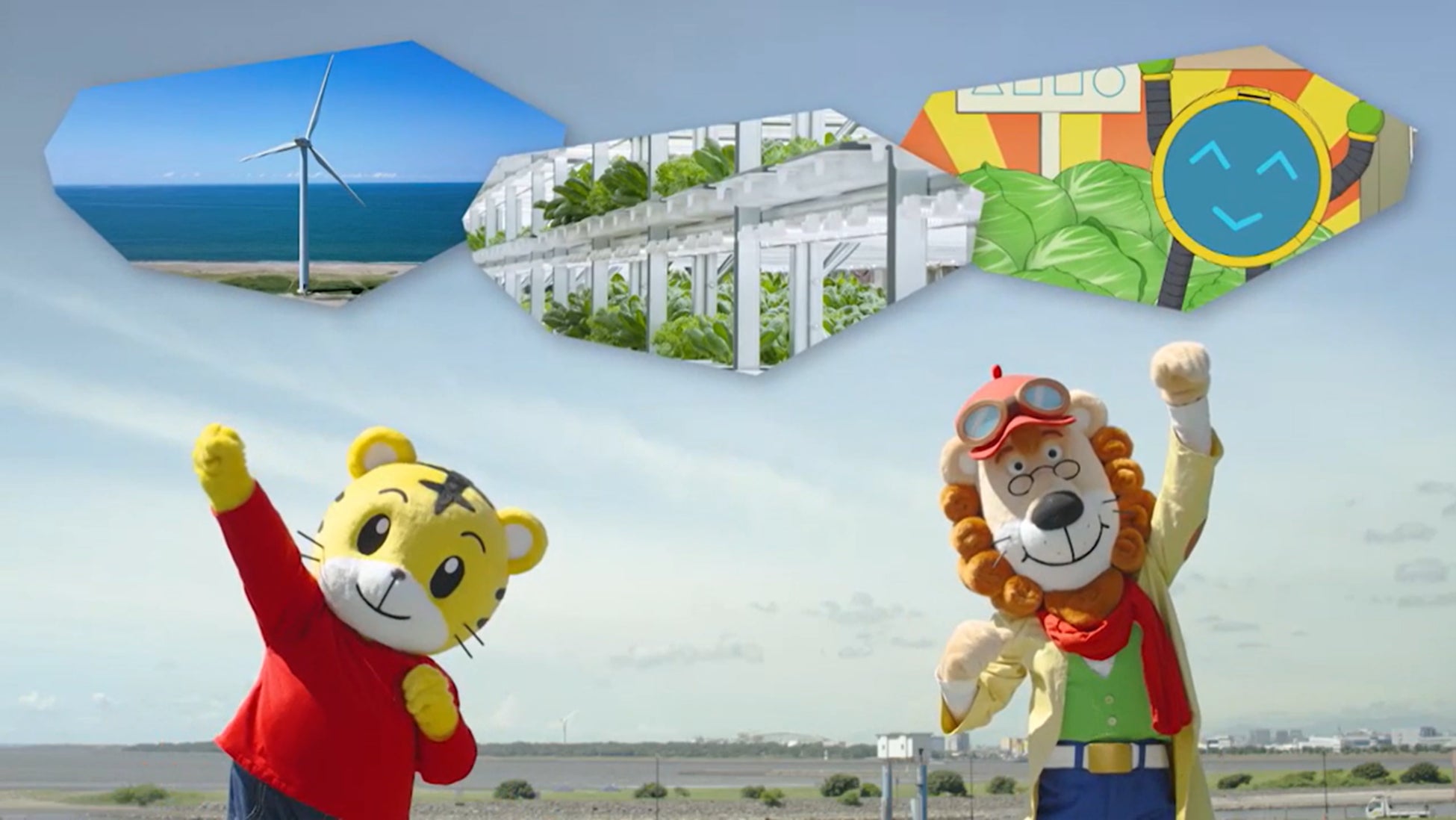 しまじろうが、土を使わず水と肥料で野菜を育てる水耕栽培の施設を訪れ、ロボットが野菜を育てる様子に驚く「水耕栽培」や、高齢のおばあさんのために家事ロボットを発明するアニメ、風力発電の仕組みやクリーンエネルギーについて学ぶコーナーなどで構成されており、子ども達に未来をつくる新しいテクノロジーや技術を伝えています。テクノロジーの進化を通じて、私たちが未来をより良くするために技術を活用し、持続可能な社会を築く大切さを子どもたちに伝える内容です。