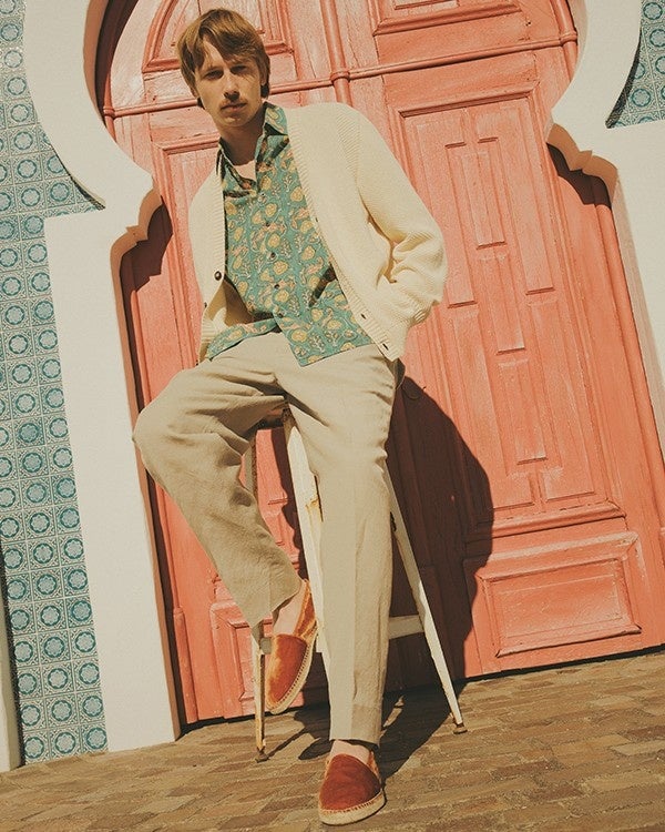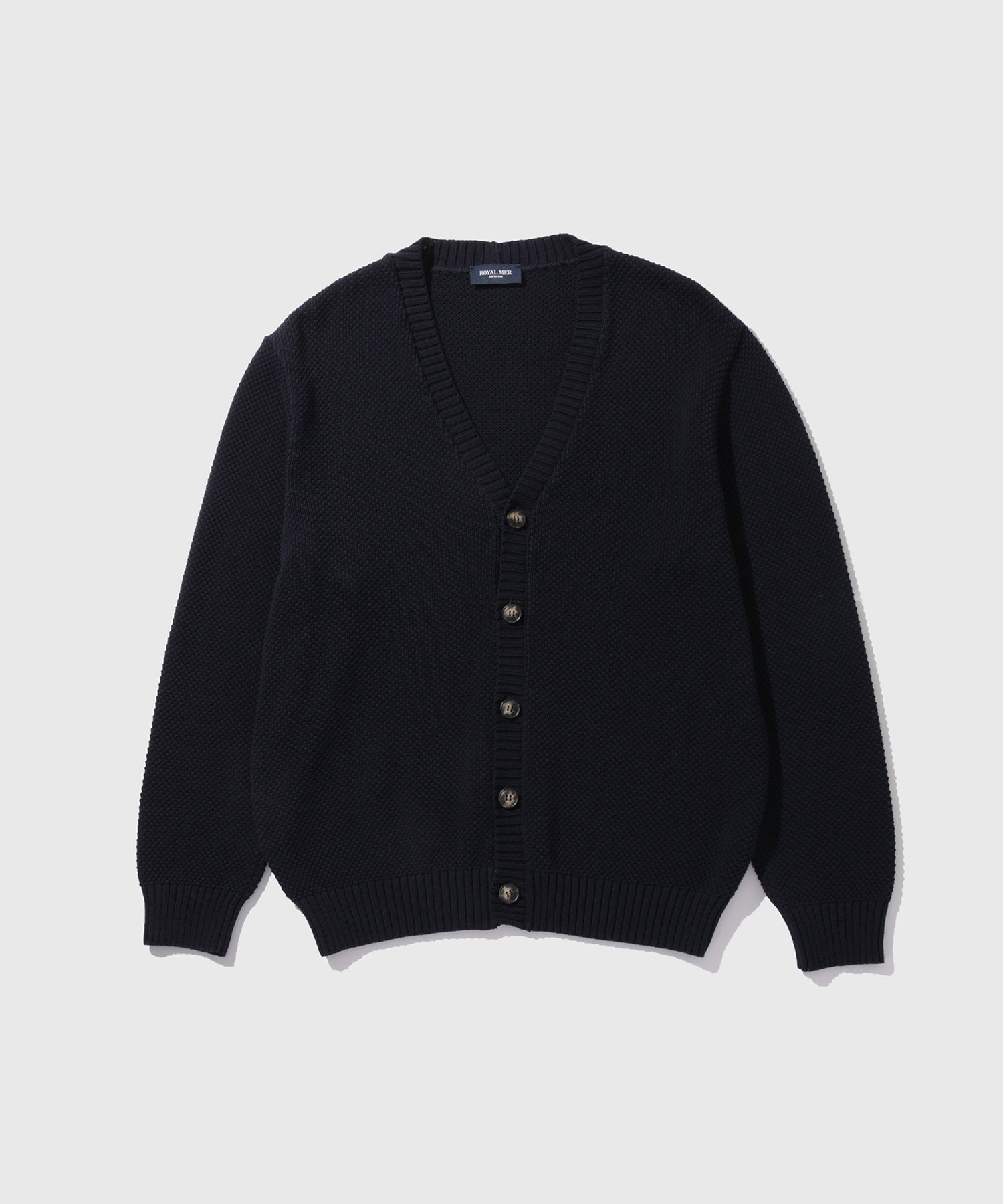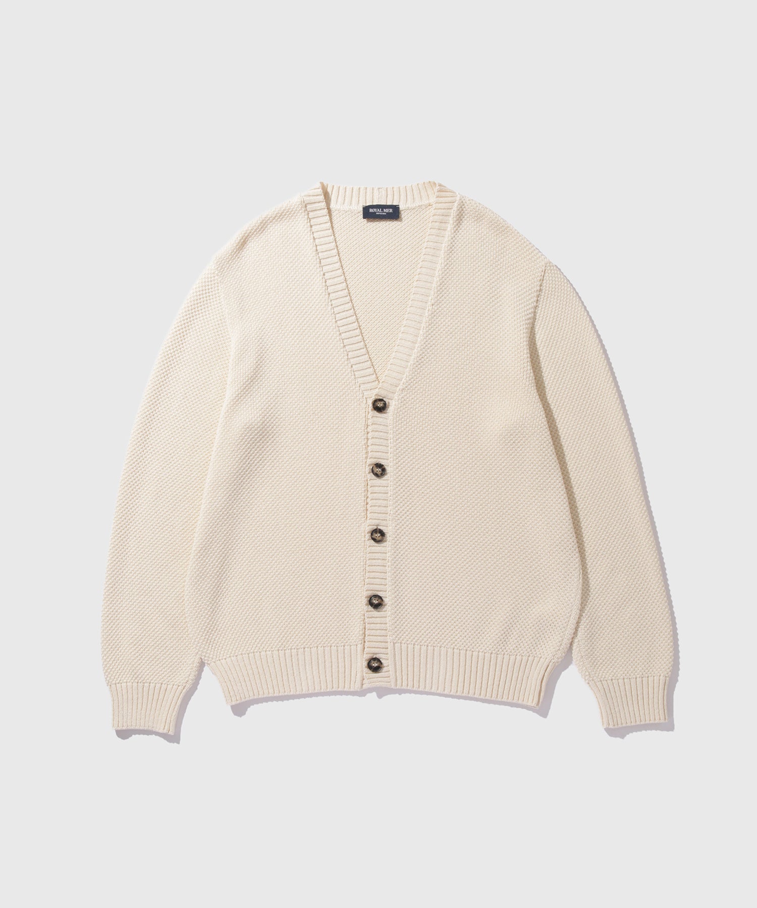 また、「ROYAL MER」のアーカイブより、point de blé(麦の穂編み)という意味をもつ、立体感があり、クラシックかつ上品な印象の編地の模様を、吸湿性や通気性に優れた、マーセライズコットンで独特のハリを出してアレンジした一着です。