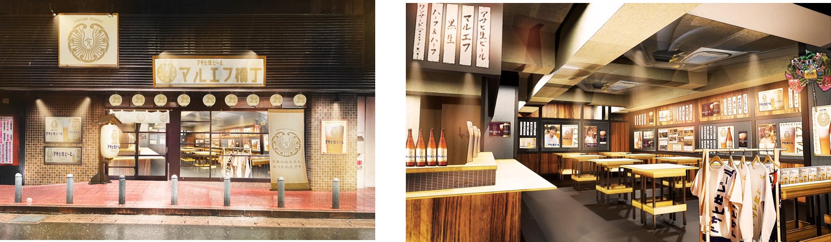 より深いブランド体験と情報発信の拠点としてフラッグシップ店舗を12月17日から福岡県でオープンします。2025年3月までに大分県・熊本県・鹿児島県で順次展開します。「人と人とのやさしいつながりやぬくもり」を創り出すブランドの世界観を体現した店内で「まろやか注ぎ」「シャープ注ぎ」などビールの注ぎ方によって変わるさまざま味わいの楽しみ方や“マルエフ”と“黒生”を1:1で混ぜる「ハーフ&ハーフ」や2:1で混ぜる「ワンサード」など、幅広い飲み方を楽しむことができます。