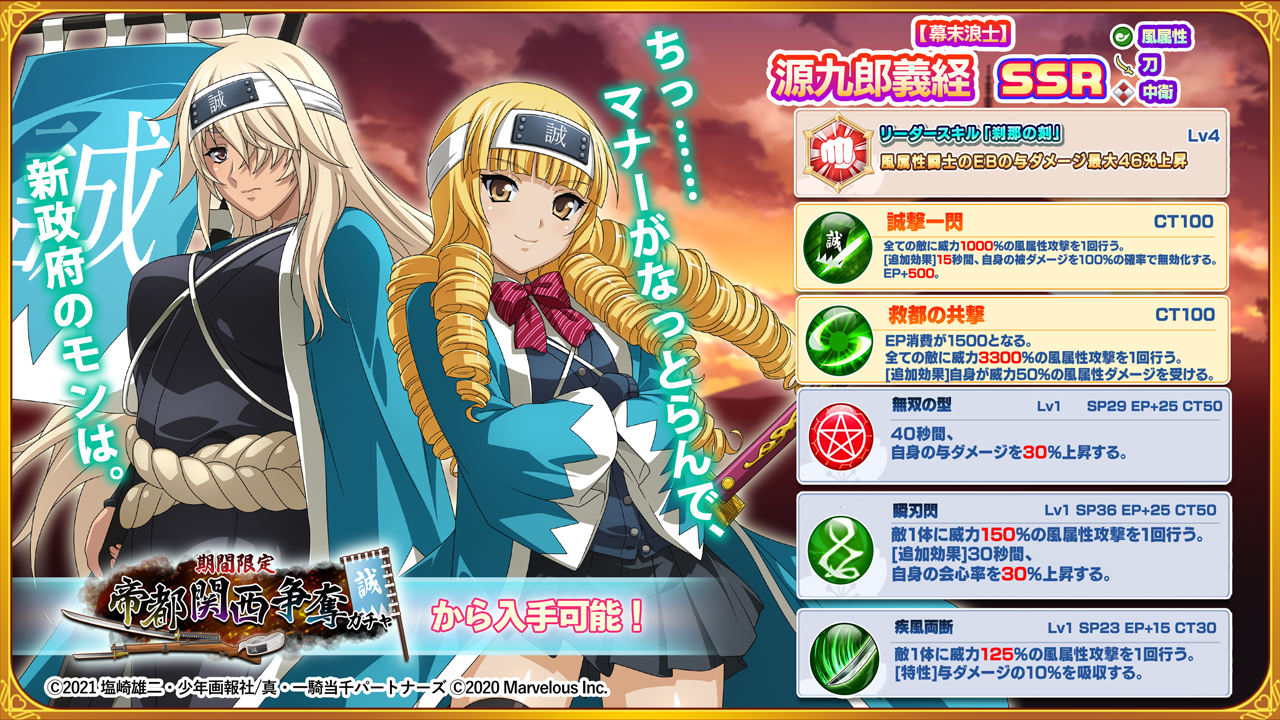 源九郎義経(CV:巽悠衣子)が限定衣装で登場!イベント参加で限定SRくーも手に入る!!