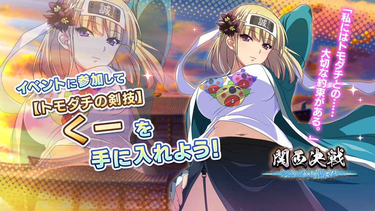 株式会社マーベラス(代表取締役社長 佐藤澄宣/所在地:東京都品川区)は、原作が20周年を迎えた大人気シリーズ「一騎当千」のAndroid/iOS向け新作ゲームアプリ『一騎当千エクストラバースト』で、2022年9月20日(火)からイベント「関西決戦~泡沫の幕末闘士伝~」前半を開始したことをお知らせいたします。