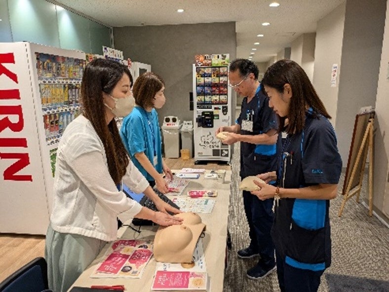 ・その他啓発、研修…ピンクリボン月間に合わせて、2023年度は本社ビルで、2024年は総合研究所、飯島ビル、横浜工場で自己触診方法の説明、乳がんモデル体験(しこりを実際に探してみる)を実施。