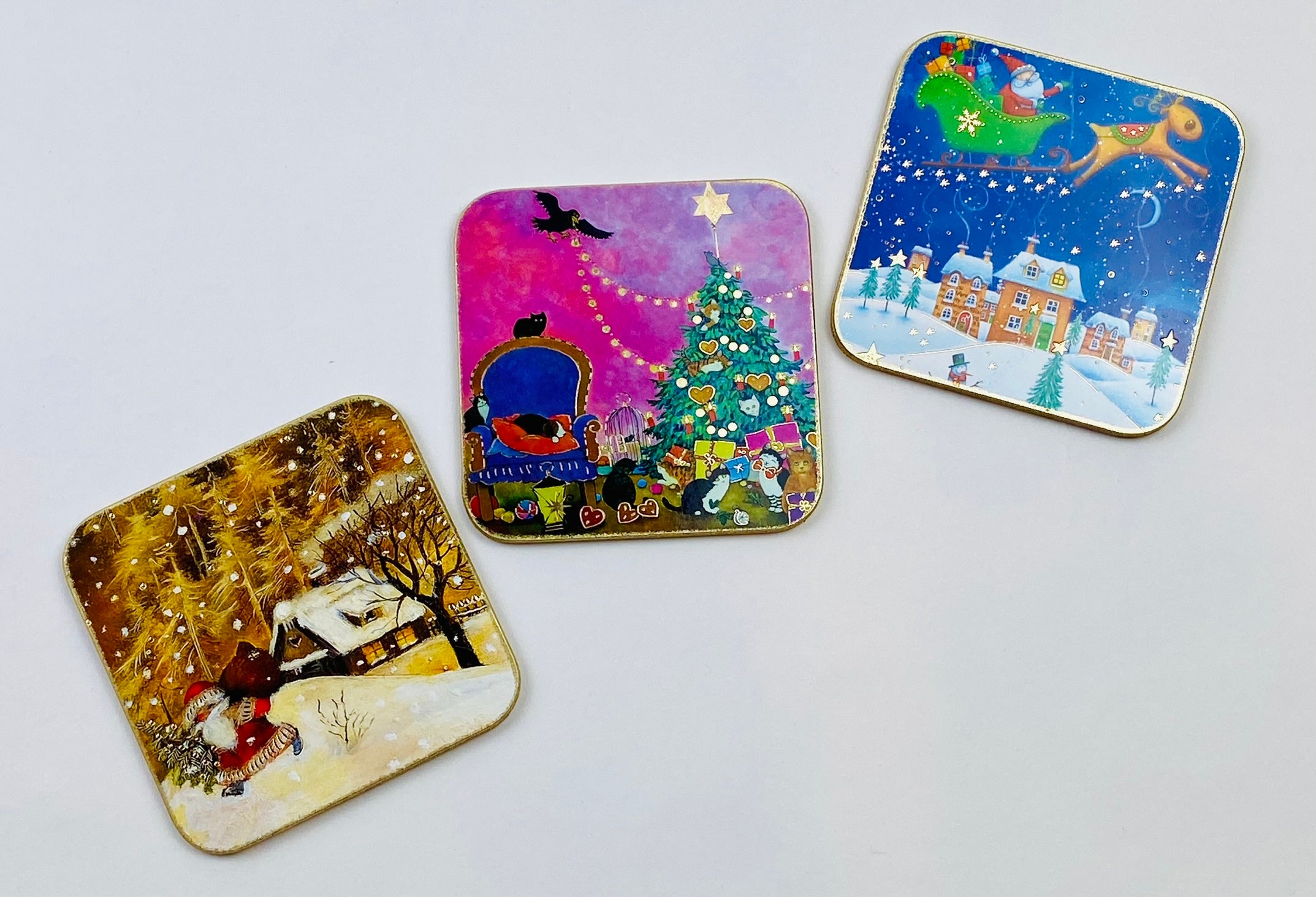 輸入物のクリスマス柄のコースターやブックマーク、アーティストが大きな紙に描いた絵をカットして作られた世界に1枚のメッセージカードなど、プレゼントに特別感を添えることができるアイテムが勢ぞろいします。