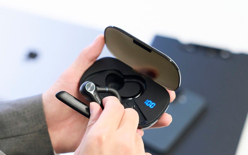 周囲の騒音を抑えて、クリアな声だけを届ける片耳ワイヤレスヘッドセット