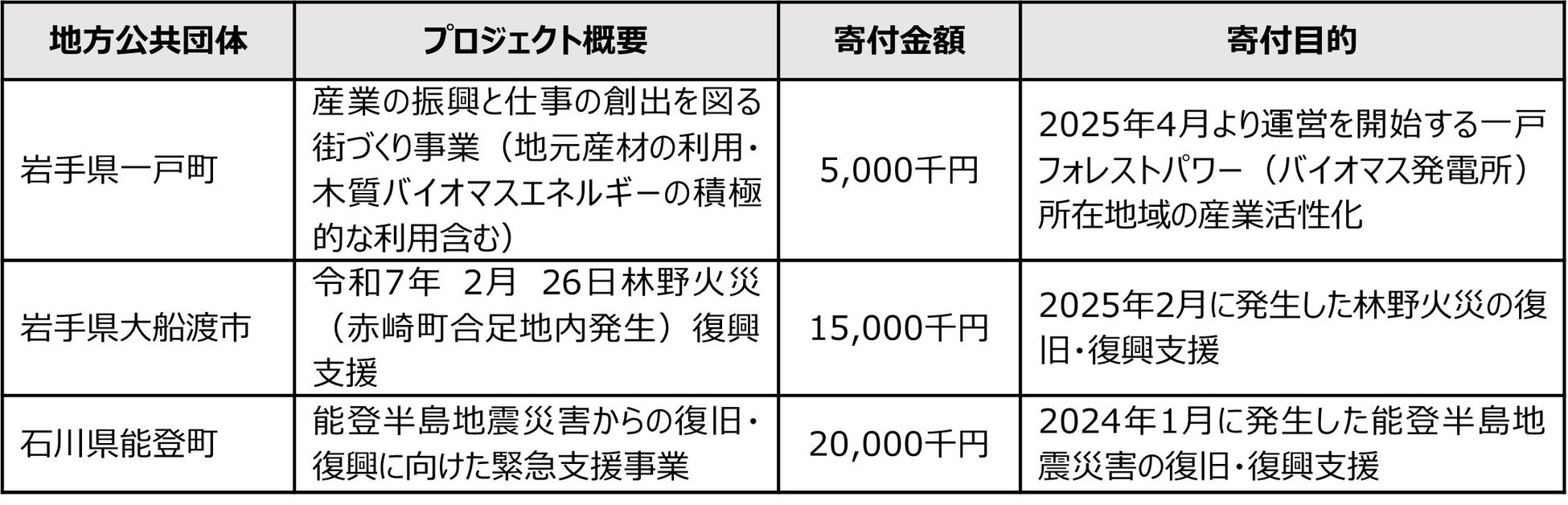 企業版ふるさと納税で新たに3自治体への寄付を実施