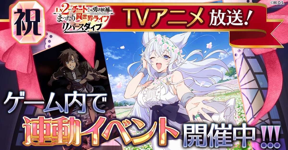TVアニメ放送開始!「Lv2からチートだった元勇者候補のまったり異世界ライフ リバースダイブ」ゲーム内でアニメ連動イベント開催!
