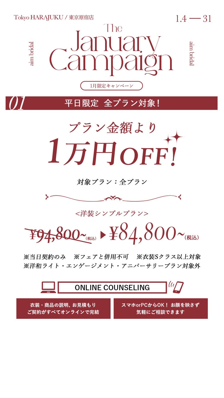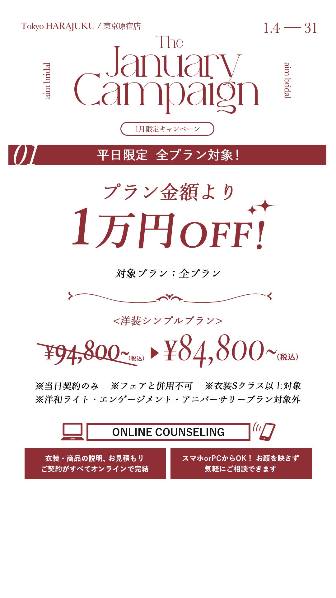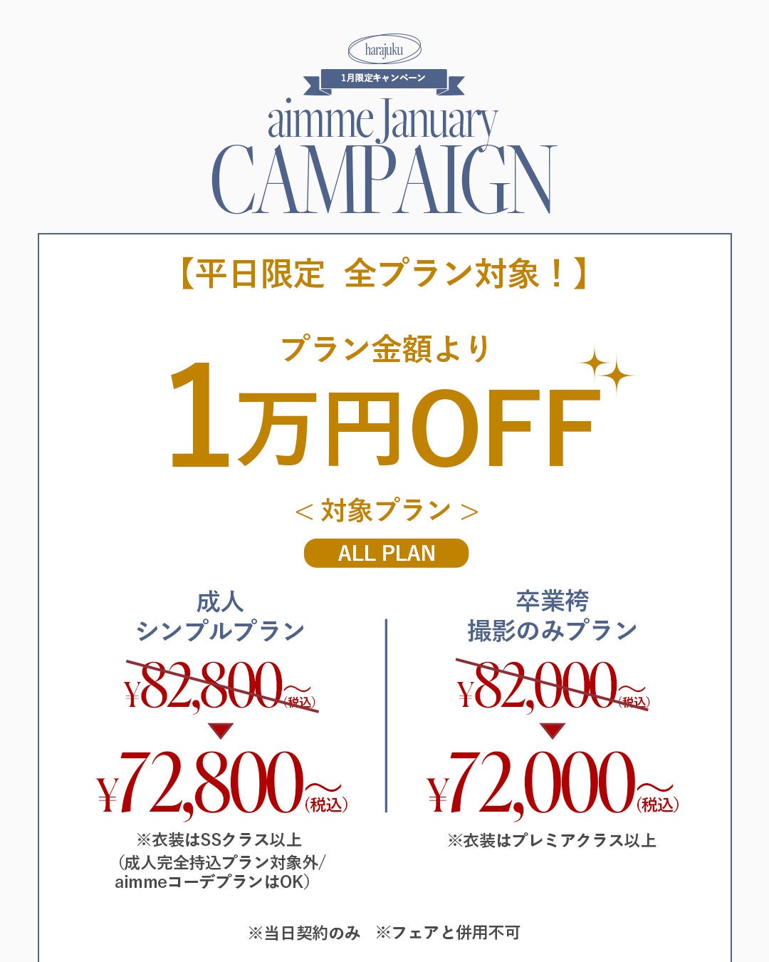 aim/aimme東京原宿店にて1月平日限定のキャンペーンを開催いたします。