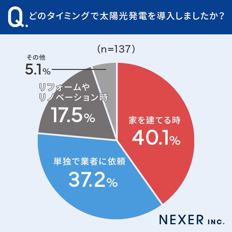 【太陽光発電設置タイミングは?】40.1%が「家を建てる時」でもっとも多い結果に