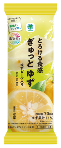 【内容】高知県産ゆず果汁を11%使用した、爽やかで香り高いアイスバーです。ゆずピール入りのとろける食感の層と、濃厚なゆずの味わいを楽しめる層の2層仕立てに仕上げました。