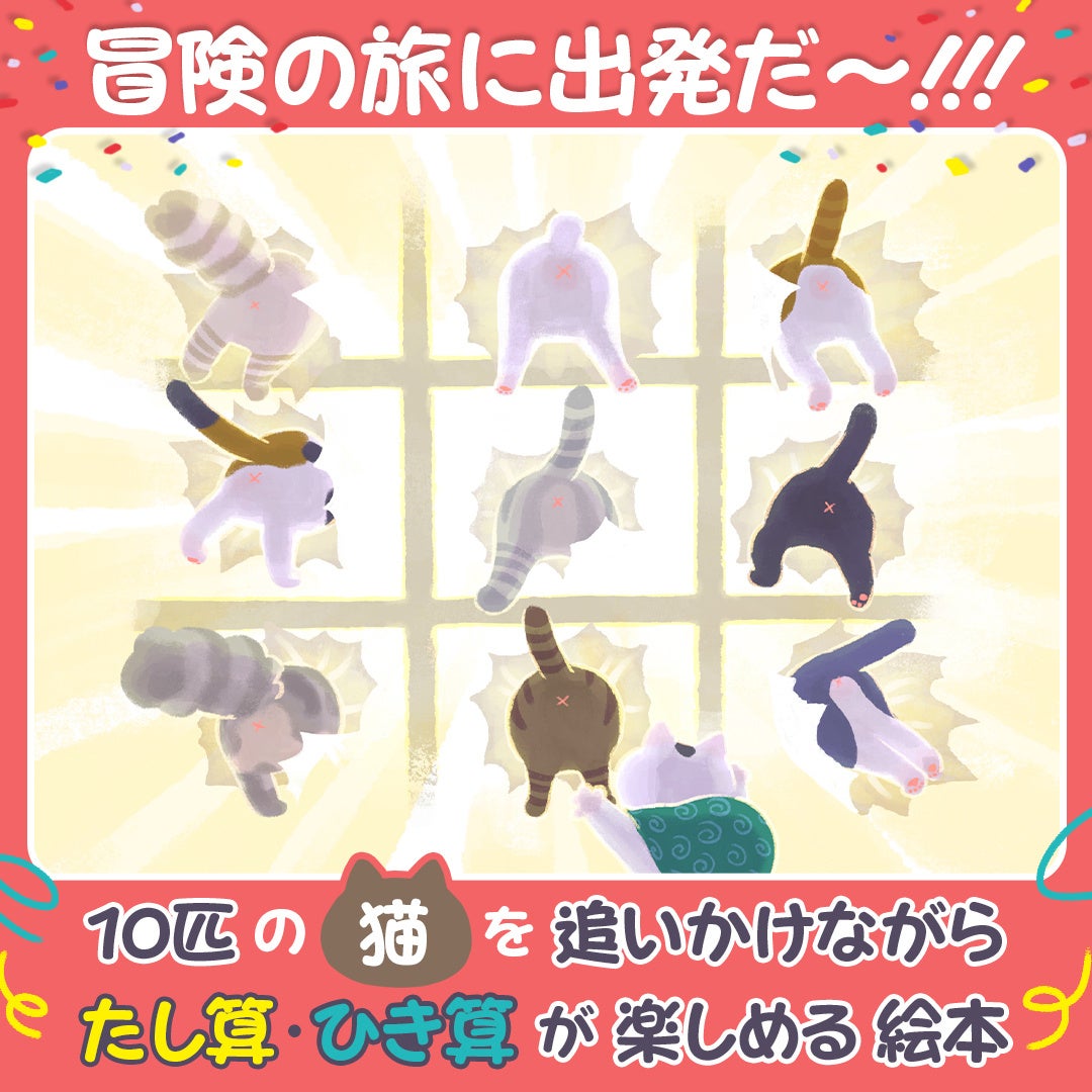 登場する「ねこ」の数を追いかけることで「たし算」「ひき算」をイメージできる、さんすう絵本!