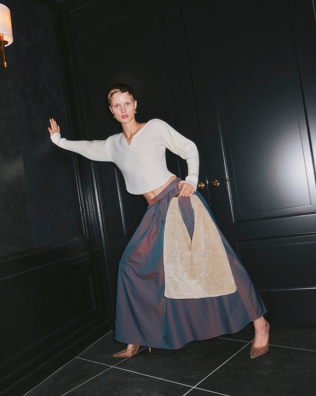 繊細で柔らかで包み込むようなワードローブとクールでスラリとしたシルエットを