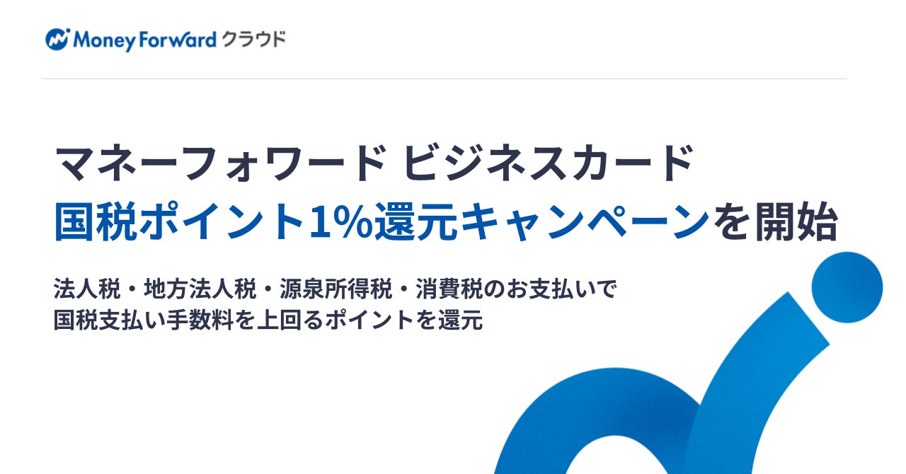 『マネーフォワード ビジネスカード』、「国税ポイント1%還元キャンペーン」を開始