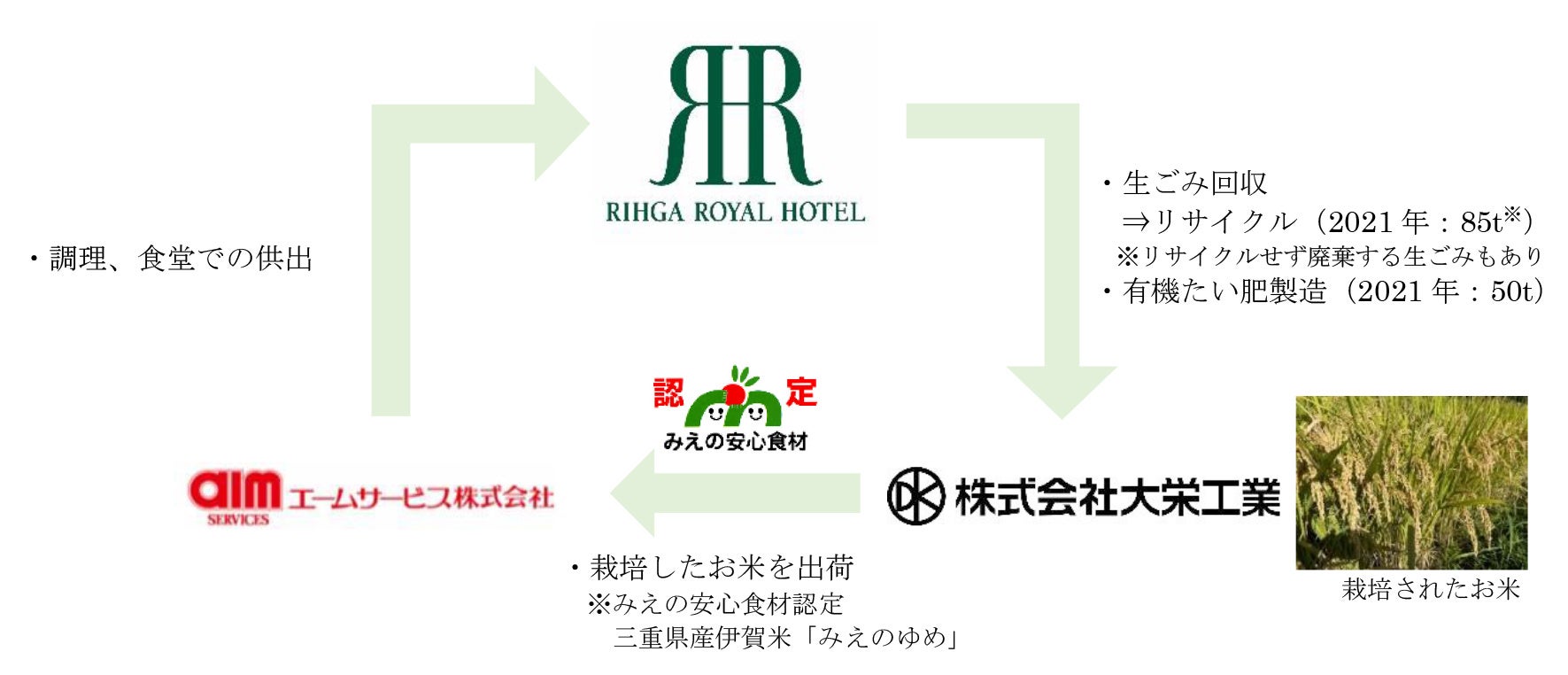株式会社ロイヤルホテル(大阪市北区中之島、代表取締役社長 䕃山 秀一)は、食品リサイクル等、環境・エネルギー事業に取り組む株式会社大栄工業(三重県伊賀市、代表取締役 山本 文生)、食堂サービスを手掛けるエームサービス株式会社(代表取締役社長 小谷 周)と協同し、リーガロイヤルホテル(大阪市北区中之島、総支配人 中川 智子)の食品廃棄物から作るたい肥を利用して栽培したお米を、11月14日(月)から当社の従業員食堂にて提供開始します。