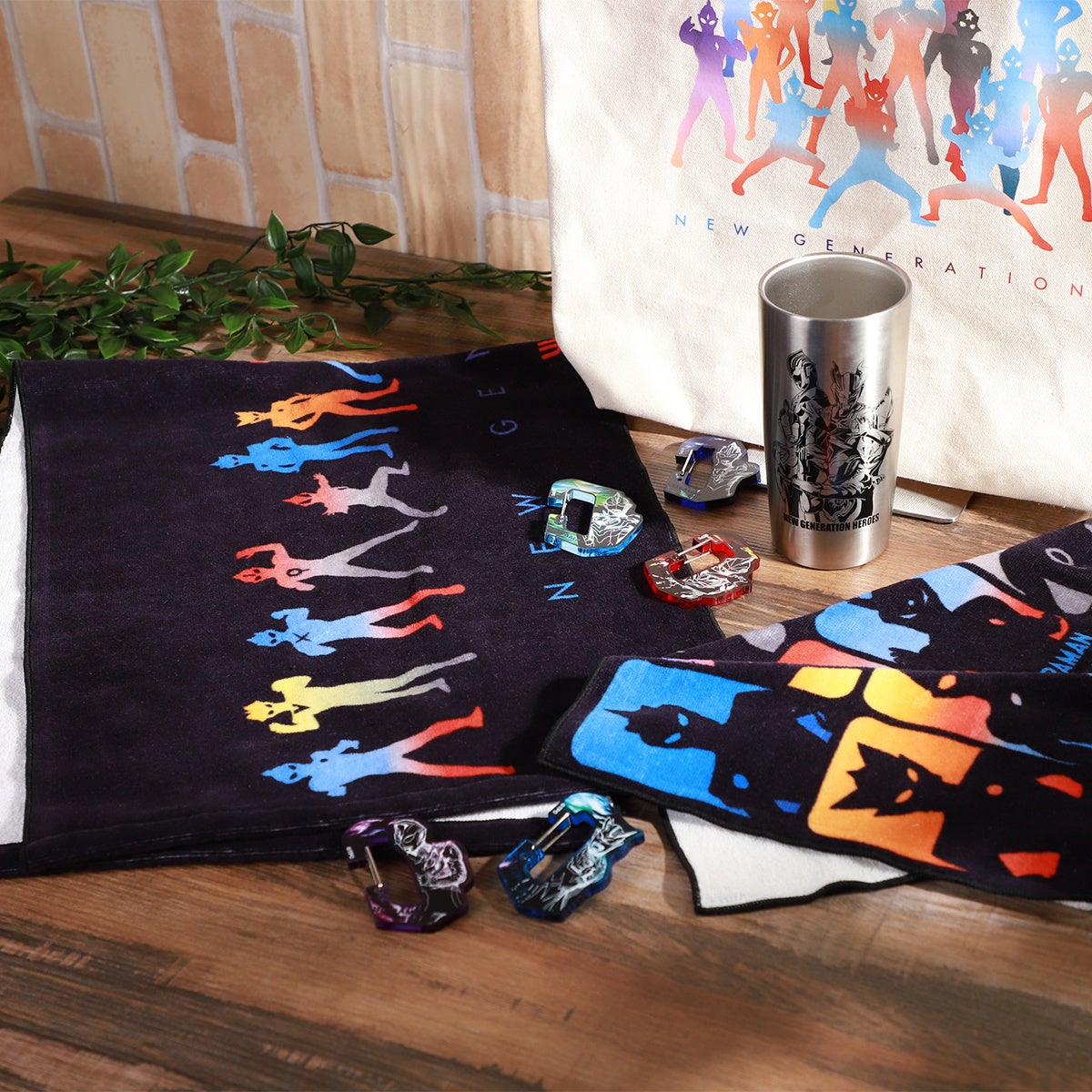 「ウルトラマンゼロ」から2022年登場の最新ヒーロー「ウルトラマンデッカー」に至るまでの10作品からなるニュージェネレーションヒーローズをデザインした雑貨シリーズが登場します。アクリルカラビナ(全5種)、スタイリッシュなステンレスタンブラー、ミニウォレット(全3種)の他、それぞれのヒーローのボディカラーやカラータイマーの色から着想を得たカラーグラデーションでヒーローのシルエットをデザインした、ミニタオル(全2種)、フェイスタオル、トートバッグが登場します。