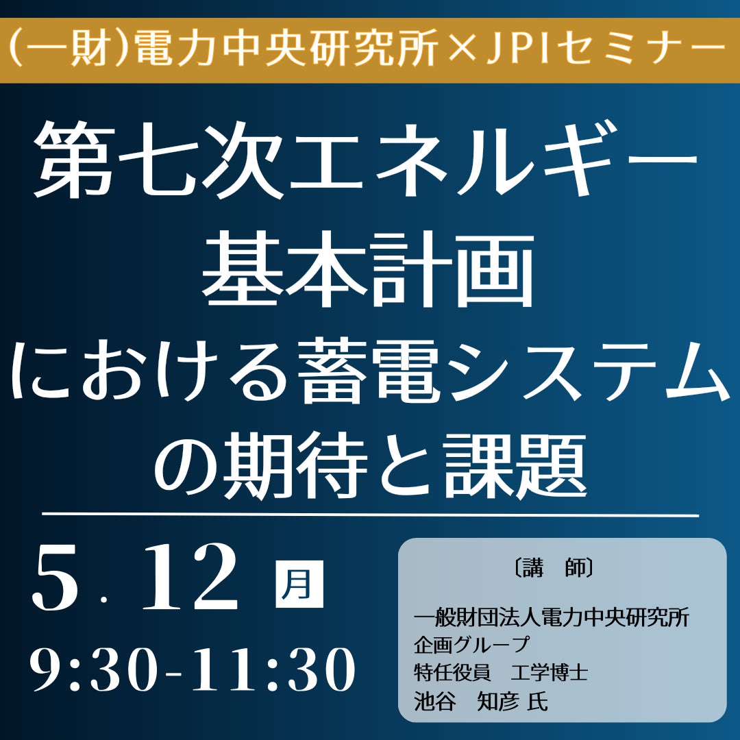 【JPIセミナー】(一財)電力中央研究所「第七次エネルギー基本計画における蓄電システムの期待と課題」5月12日(月)開催