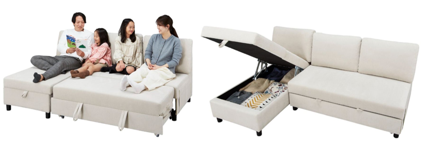 お客様の『家族でゆったりくつろぎたい』『もっと収納力が欲しい』の声に応えたソファベットが誕生しました。
