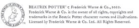 世界中で愛されている『ピーターラビットのおはなし』(原題The Tale of Peter Rabbit™、作ビアトリクス・ポター™)の主人公。英国の湖水地方の農園を舞台にくりひろげられる物語で、1901年250部の自費出版を経て、翌年1902年10月全ての絵に色を付け、フレデリック・ウォーン社から刊行。2年足らずの間に5万部を超えるベストセラーとなり、多くのキャラクターが登場する絵本シリーズとなりました。現在この絵本シリーズは世界110ヶ国48ヶ国語にて発行され、累計発行部数2億5,000万部以上の世界的ベストセラーとなっています。2022年は絵本出版から120周年を迎え、原画展をはじめとする様々なアニバーサリーイベントが全国で開催されています。