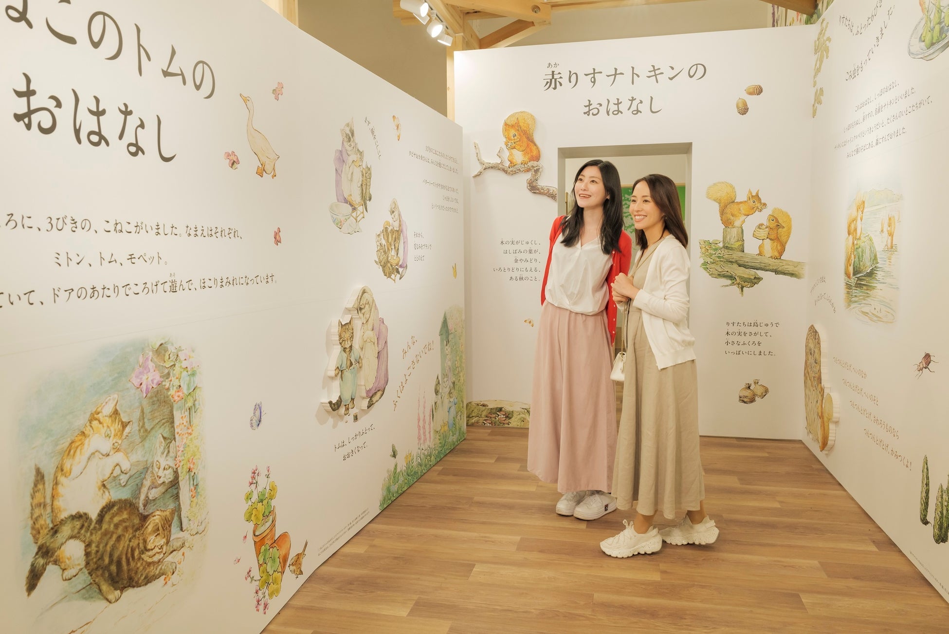ショップ内にあるギャラリーでは、『ピーターラビットのおはなし』をはじめ、『赤りすナトキンのおはなし』や『かえるのジェレミーのおはなし』といった5つのおはなしをテーマに、絵本の世界に入り込んだかのような体験ができます。なお、絵本の翻訳は早川書房より刊行されている絵本<ピーターラビット™>シリーズの翻訳を手がける小説家・詩人の川上未映子氏に特別に翻訳をしていただきましたので、ぜひご注目ください。