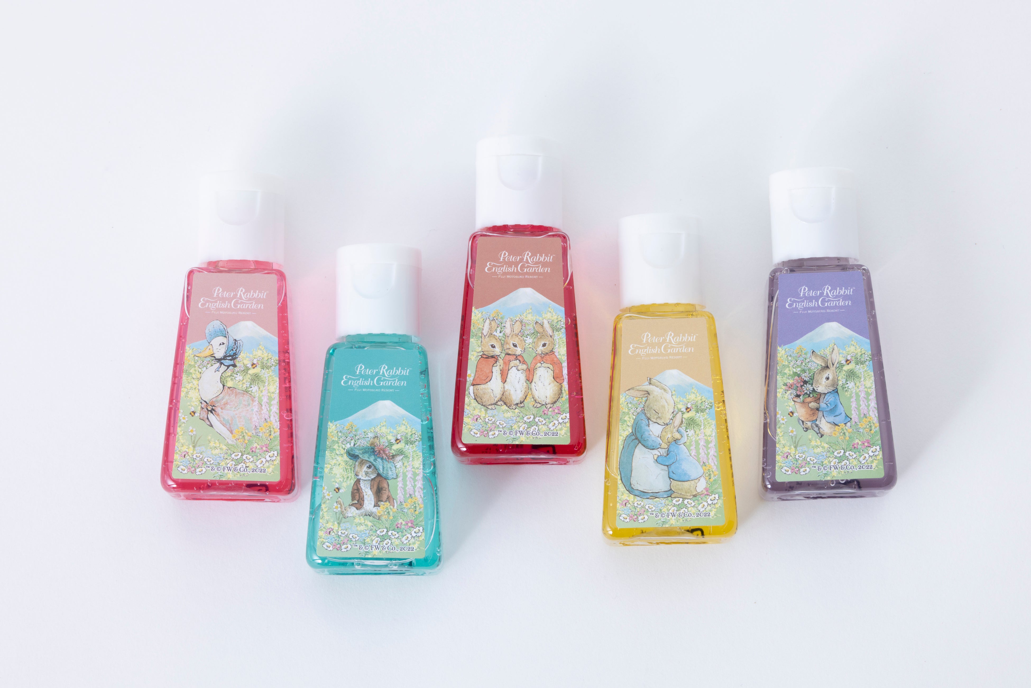 富士山を抱えた姿が可愛らしいピーターの「ぬいぐるみ」をはじめ、5キャラクターのイラストで飾り付けられたカラフルな「ハンドジェル」やインテリアとしてもご活用いただける絵本の形をした「お菓子入りブック缶」、ピーター・富士山・花々が描かれたやさしい色合いの「御朱印帳」、日常的にお使いいただける「ランチバッグ」など、ここでしか買えない可愛さ満点のオリジナルグッズが多数登場いたします。
