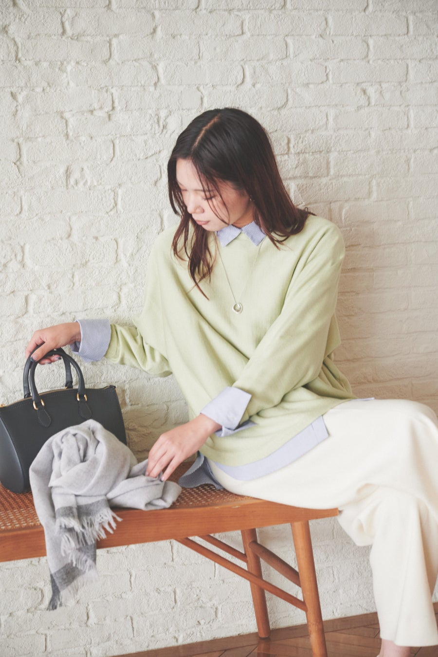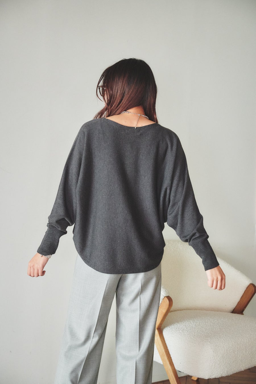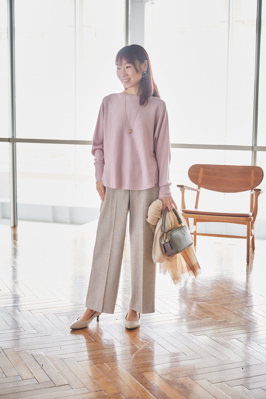 薄手ですっきりとした目面のしなやかな素材を横地使いにしたボートネックプルオーバーです。 ゆったりしたサイジングですが、落ち感があるのでボリュームが出にくいのもうれしいポイント。